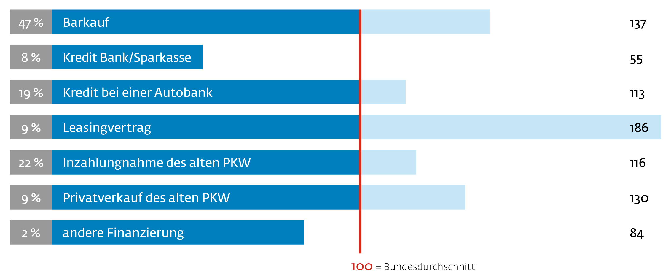 Die Finanzierungsarten beim Neuerwerb stellen sich wie folgt dar: