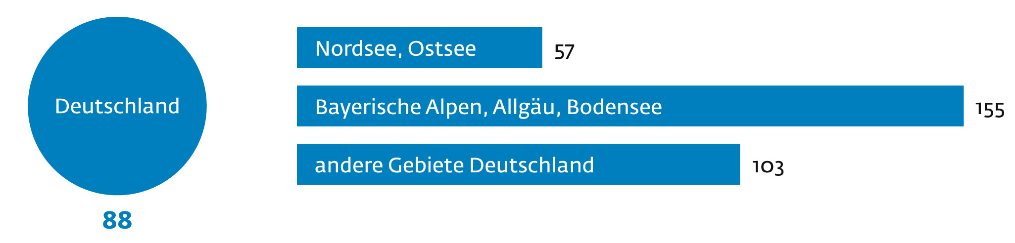 Im Vergleich zum Bundesdurchschnitt zieht es bayerische Immobilienbesitzer im Urlaub eher in die europäischen Nachbarländer oder halt ganz weit weg, Deutschland wird unterdurchschnittlich als Urlaubsziel ausgewählt. Nichtsdestotrotz hat das eigene Bundesland eine hohe Anziehungskraft. (Mehrfachnennungen möglich; Indexwerte)
