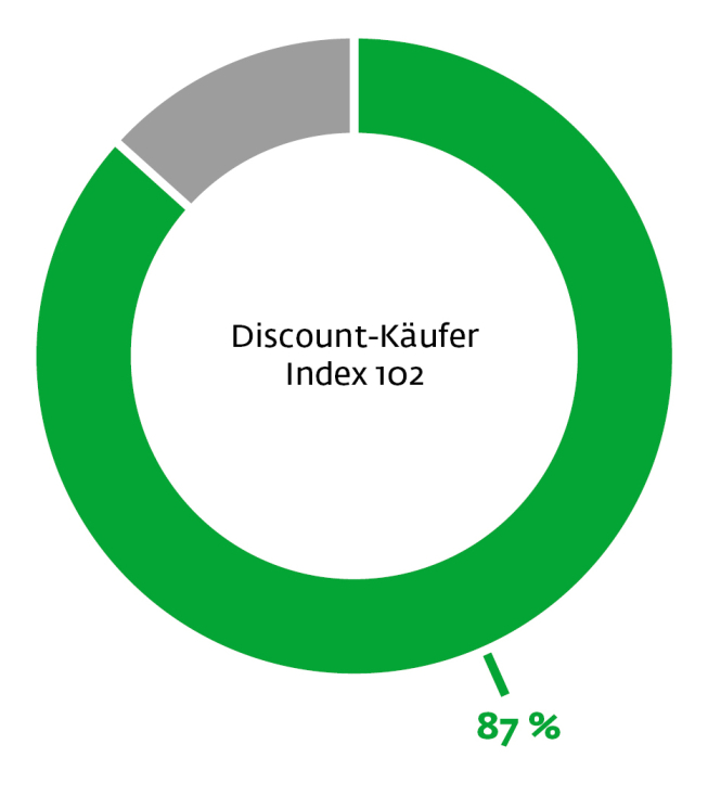 Die Vielfalt zeigt sich auch bei den Kauforten: Im Durchschnitt wählen die Gartenfreunde sechs Adressen dafür aus. Dieses waren die hauptsächlichen Kauforte für Lebensmittel und Produkte des täglichen Bedarfs in den letzten drei Monaten. Die Verhältnismäßigkeit zeigt die Abweichung vom Bundesdurchschnitt (Indexwert mindestens 117).