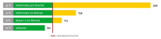 Naheliegender Weise steht die Beschäftigung mit dem Garten und allem Zugehörigen im Mittelpunkt. So geben 35 % der Gartenfreunde an, sich mehrmals pro Woche mit dem Garten zu beschäftigen, etwa 3,5-mal so viel wie der Durchschnitt in Deutschland:
