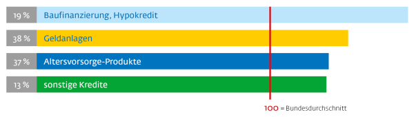 Neben der eigenen Recherche zu Finanzthemen, wenden sie sich gerne an Fachleute. Hier noch einige Statements zum Thema Geldanlage und Versicherungen (Zustimmung voll und ganz/eher in %; Index 100 = Bundesdurchschnitt):