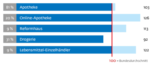 In folgenden Kauforten wurden rezeptfreie Medikamente und Medizinpräparate in den letzten 12 Monaten erworben (hauptsächlich/auch noch):